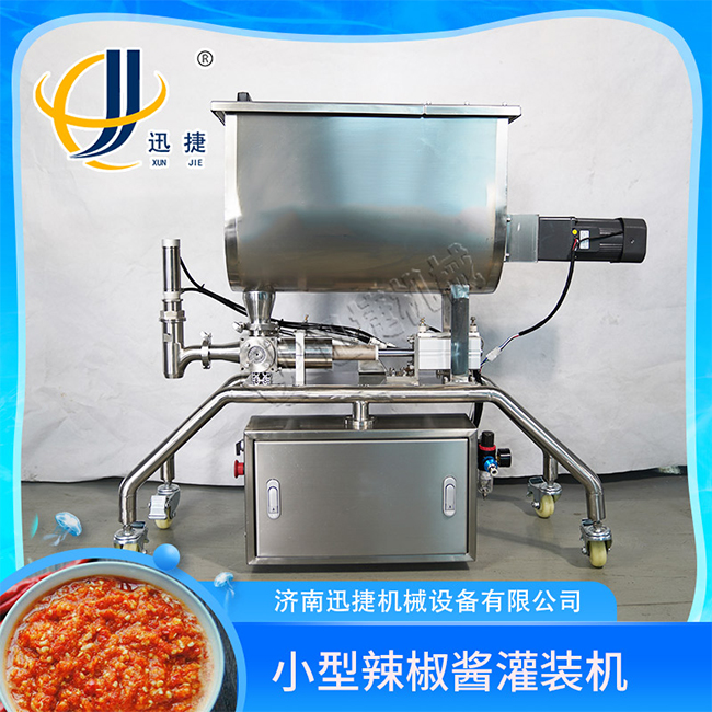 堅持走科技智能、自動化發展路線的迅捷機械公司在今天的市場中以深厚的技術和文化底蘊成為國內專業的包裝行業的一員,在不斷的淘汰著那些老式的顆粒醬灌裝機,特別是在現在的市場上面,國內的黃豆醬產品的包裝可謂令人眼花繚亂,絢麗多彩,自然也就對顆粒醬灌裝機的需求是在不斷地提高。所以敢于創新我們對顆粒醬灌裝機設備加入了超大304不銹鋼攪拌料斗其目的就是為了200L超大304不銹鋼攪拌料斗,加大不銹鋼料斗葉片特殊設計的顆粒醬灌裝機具有自動攪拌功能,在灌裝醬更加的均勻,讓醬料可以不被沉淀,而且葉片寬度大,攪拌顆粒醬的時候更加有力,物料油料混合更均勻。